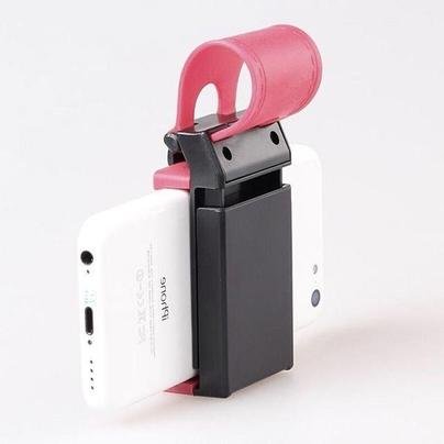 (Pink) Steering Wheel Mounted Smartphone Holder / Car Phone Holder with Silicone Non-Slip Grip