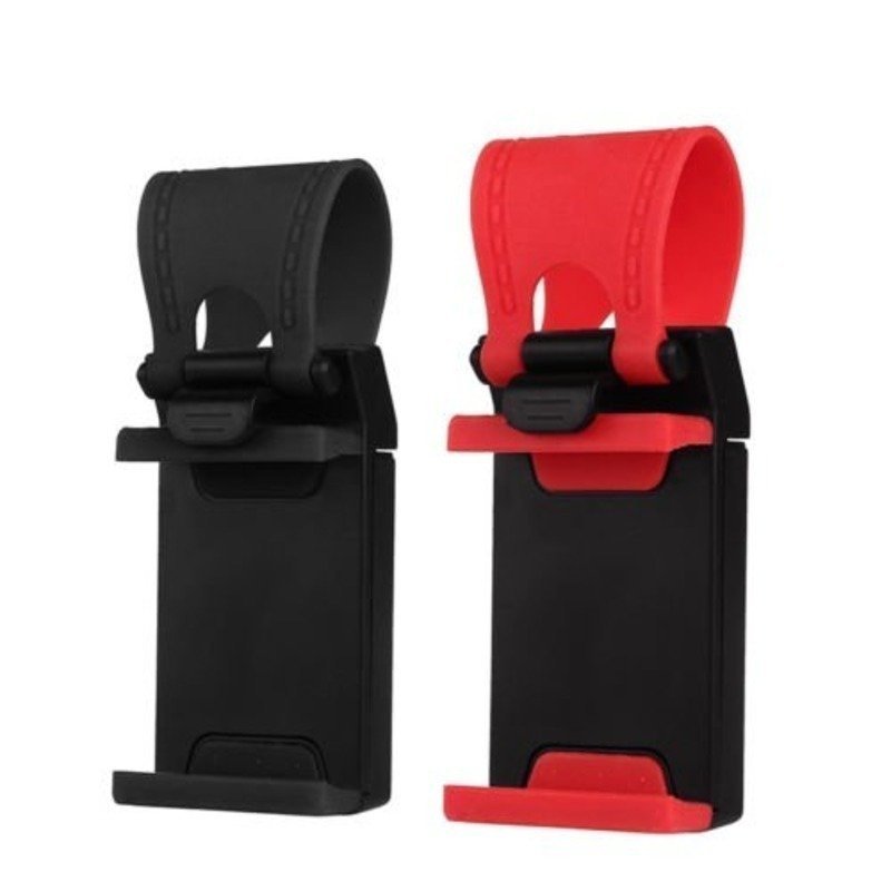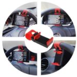 (Red) Steering Wheel Mounted Smartphone Holder / Car Phone Holder with Silicone Non-Slip Grip