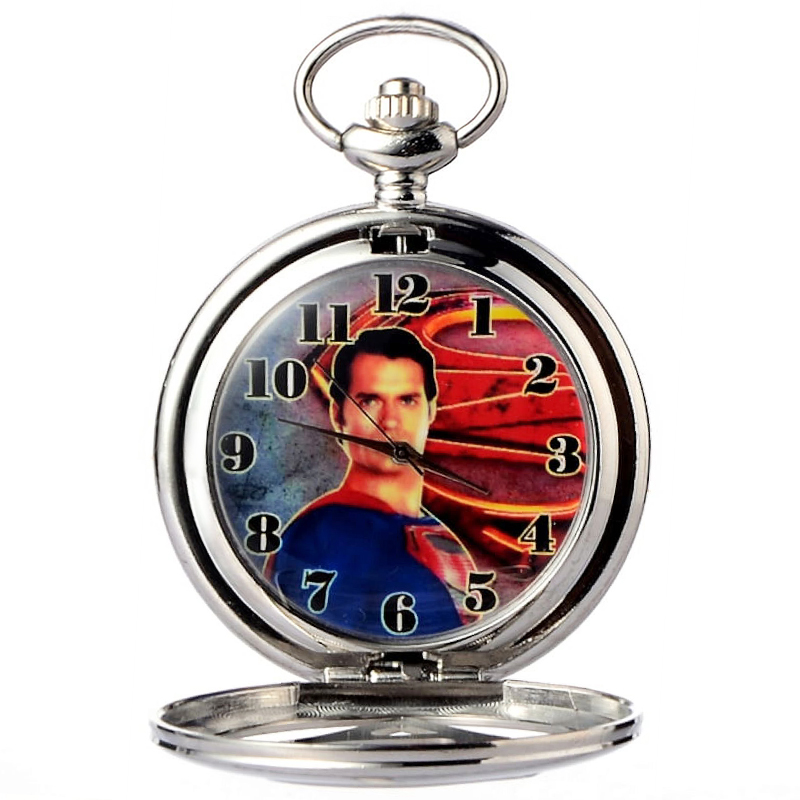 Superman Silver Pocket Watch_Jewelry Movie Anniversary Birthday Gift Travel Souvenir Tourism