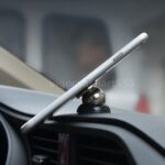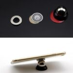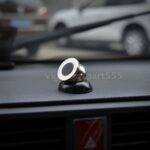 This magnetic mount is designed to be easily fixed to a vehicle dashboard or any flat surface using an adhesive double-sided tape.