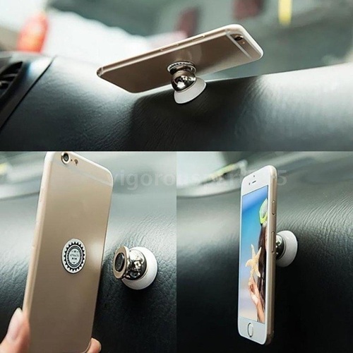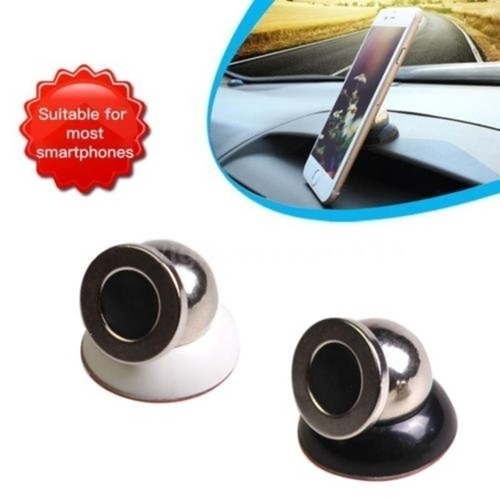(White) Compact Ball-Type Magnetic Car Mount / Rotating Dashboard Magnet Holder Gift